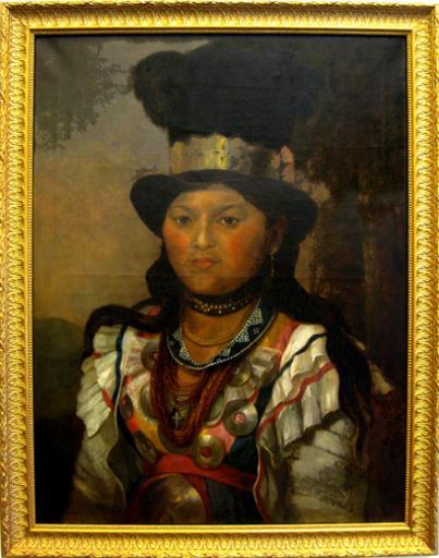 Keywords: Sarah molasses penobscot.jpg en Photo of portrait of Sarah Molasses a Penobscot woman and daugther of John Neptune and Molly Molasses oil on canvas 32-3/4 x 24 painted ca 1886 by Anna Eliza Hardy 1839-1934 copying an original by Jeremiah Pearson Hardy 1800-1887 This painting is in the collection of the Peabody Museum of Archaeology and Ethnology Harvard own Anna Eliza Hardy; photographed by Uyvsdi ~ 1886 PD-old-auto 1934 1880s paintings Penobscot Portrait paintings of Native Americans History of Maine Peabody Museum Harvard University Anna Eliza Hardy |