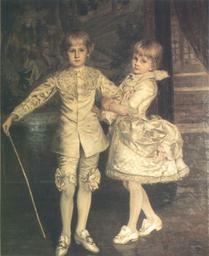 Keywords: Sarah Purser Berkeley and Dorothy Sheffield 1885.png Oil on canvas painting by Sarah Purser titled Berkeley and Dorothy Sheffield Catalogued under the number 131 This painting was exhibited in 1885 at the Royal Academy in London 1885 self-scanned John O'Grady The Life and Work of Sarah Purser Four Courts Press Dublin 1996 ISBN 1-85182-241-0 plate 15 Creator Sarah Purser PD-old-auto 1943 Sarah Purser |