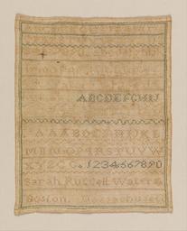 Keywords: Sarah Russell Waters - Sampler - Google Art Project.jpg ~ 1810 Sarah 6833499 Russell Waters /collection/cooper-hewitt-national-design-museum/artwork/sampler-sarah-russell-waters/6815748/ 155674 Sarah Russell Waters /artist/sarah-russell-waters/12688872/ 12688872 /collection/cooper-hewitt-national-design-museum/ Cooper-Hewitt National Design Museum 3644669 http //www cooperhewitt org/ /collection/cooper-hewitt-national-design-museum/artwork/sampler-sarah-russell-waters/6815748/ 1805 ca 1810 Medium silk embroidery on linen foundationTechnique embroidered in counted cross and stem stitches on plain weave foundation Ex coll Fraser-Martin Donor's Notes Bought in Exeter about 1904 6815748 False 1815 1976-100-57 http //collection cooperhewitt org/view/objects/asitem/id/155674 Gift of Anonymous Donor from the Fraser/Martin Collection Sampler 1800 1820 ca 1810 False 0 80859375 Object sampler-sarah-russell-waters Sampler s H x W 25 4 x 20 cm 10 x 7 7/8 in S R WatersSarah Russell Waters Boston Massachusetts Medium silk embroidery on linen foundationTechnique embroidered in counted cross and stem stitches on plain weave foundation Ex coll Fraser-Martin Donor's Notes Bought in Exeter about 1904 special url_id xwH1f37kYa5Y6A PD-old-100-1923 Google Art Project works by Sarah Russell Waters Textiles in the Cooper “Hewitt Smithsonian Design Museum 1810s samplers Google Art Project works in Cooper-Hewitt Smithsonian Design Museum 1810 works |