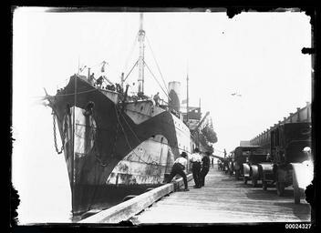 Keywords: peninsular and oriental steam navigation company peninsularandorientalsteamnavigationcompany p & o line poline samuel j hood collection samueljhoodcollection hood collection hoodcollection dazzle paint dazzlepaint camouflage war troopship sardinia world war i worldwari wwi razzle dazzle razzledazzle dazzle camouflage dazzlecamouflage monochrome blackandwhite photo border outdoor black and white Troop transport SARDINIA in dazzle camouflage paint at a wharf during World War I. This photo is part of the Australian National Maritime Museum’s Samuel J. Hood Studio collection. Sam Hood (1872-1953) was a Sydney photographer with a passion for ships. His 60-year career spanned the romantic age of sail and two world wars. The photos in the collection were taken mainly in Sydney and Newcastle during the first half of the 20th century. The ANMM undertakes research and accepts public comments that enhance the information we hold about images in our collection. This record has been updated accordingly. Photographer: Samuel J. Hood Studio Collection Object no. 00024327 Troop transport SARDINIA in dazzle camouflage paint at a wharf during World War I. This photo is part of the Australian National Maritime Museum’s Samuel J. Hood Studio collection. Sam Hood (1872-1953) was a Sydney photographer with a passion for ships. His 60-year career spanned the romantic age of sail and two world wars. The photos in the collection were taken mainly in Sydney and Newcastle during the first half of the 20th century. The ANMM undertakes research and accepts public comments that enhance the information we hold about images in our collection. This record has been updated accordingly. Photographer: Samuel J. Hood Studio Collection Object no. 00024327 |
