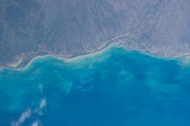 Keywords: satellite image coast coastline shore ocean sea water land terrain landscape aerial view above turquoise nature view