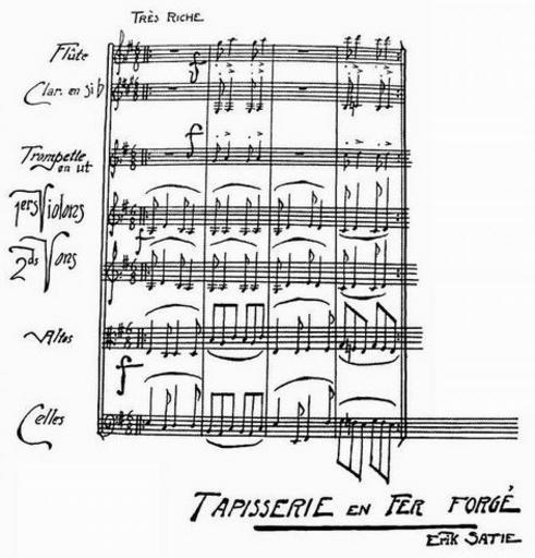 Keywords: Satie Tapisserie en Fer forge 1924.jpg en Erik Satie Tapisserie en Fer forge Partiture Musique d'ameublement 1924 - pour graph de Bomond ru Э ик Сати Железный ков ик для п иёма гостей - па титу а ебли овочной музыки автог аф отдельные элементы добавлены от уки авто а книги Ю ий Ханон book Э ик Сати Ю ий Ханон Воспоминания задним числом Цент С едней узыки С-Пете бу г 2009 archives de --FinitoR Erik Satie ~ 1924 PD-old Musique d'ameublement |