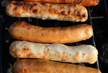 Keywords: sausage fry bratwurst barbecue sizzle grill sausage food snack eat