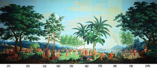 Keywords: 'Sauvages de la Mer Pacifique', panels 1-10 of woodblock printed wallpaper designed by --Jean-Gabriel Charvet-- and manufacturered by --Joseph Dufour--.jpg 'Sauvages de la Mer Pacifique' panels 1-10 of woodblock printed wallpaper designed by Jean-Gabriel Charvet and manufactured by Joseph Dufour et Cie Panel 1 Inhabitants of Nootka Island in Canada which was visited by Cook in March 1778 Panel 2 Inhabitants of Raiatea the second largest of the Society Islands in French Polynesia Chief Oreo met Captain Cook in 1777 Panel 3 Inhabitants of Ha'apai in Tonga A man a woman and a girl behind plum trees taking part in feast of the Arroey seen in panel-2 Panels 4-6 Inhabitants of Tahiti the largest island in French Polynesia O-too King of Tahiti in panel 6 on a throne beneath a banana tree between two coconut trees with his daughter and sister in 1773 The scene is a heava a kind of dramatic dance accompanied by flutes drums and a chorus of singing and clapping girls Panel 7 Inhabitants of Tanna New Hebrides Vanuatu visited by Cook in July 1774 There are three islanders in foreground The double war canoe in the background was launched during Cook s stay in Pare Tahiti Panels 8-9 Inhabitants of the Sandwich Islands Hawaii visited by Cook for the third time in January 1779 Chief Kaneena is in the foreground of panel 9 and behind him another chief watch Cook s death Cook s two ships HMS Resolution and the smaller HMS Discovery are anchored off shore The volcano in the background resembles Mount Yasur on the island of Tanna in New Hebrides and is unlike any in Hawaii Panels 10-11 Inhabitants of New Zealand discovered by Abel Tasman In panel 10 Chief Kaoora who killed a detachment of Captain Furneaux s crew sits on a rock under two gris-gris trees In panel 11 a New Zealand woman and child with warriors on a trail to the rear panels 1-10 of woodblock printed wallpaper designed by Jean-Gabriel Charvet and manufactured by Joseph Dufour et Cie from K R Howe 'Ideas of Māori origins - 1770s 1840s early ideas' Te Ara - the Encyclopedia of New Zealand updated 15-Nov-12 pre 1829 designed by Jean-Gabriel Charvet and manufactured by Joseph Dufour et Cie PD-art-100 Original upload log page en wikipedia 27Sauvages_de_la_Mer_Pacifique 27 2C_panels_1-10_of_woodblock_printed_wallpaper_designed_by_--Jean-Gabriel_Charvet--_and_manufacturered_by_--Joseph_Dufour-- jpg 2007-07-14 00 58 Wmpearl 1826×796× 335024 bytes <nowiki>'Sauvages de la Mer Pacifique' panels 1-10 of woodblock printed wallpaper designed by Jean-Gabriel Charvet and manufacturered by Joseph Dufour</nowiki> 2007-07-13 21 50 Wmpearl 1826×796× 331031 bytes <nowiki>'Sauvages de la Mer Pacifique' panels 1-10 of woodblock printed wallpaper designed by Jean-Gabriel Charvet and manufacturered by Joseph Dufour</nowiki> 2007-07-13 21 02 Wmpearl 1826×748× 319645 bytes <nowiki>'Sauvages de la Mer Pacifique' panels 1-10 of woodblock printed wallpaper designed by Jean-Gabriel Charvet and manufacturered by Joseph Dufour</nowiki> Sauvages de la Mer Pacifique Dufour |