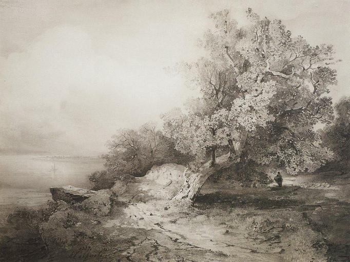 View Original:savrasov_old_oak_tree_cliff_above_river_1857.jpg (1000x751)