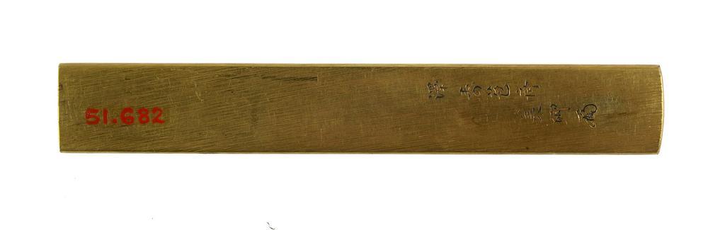 | Keywords: Sawa Yoshisato - Kozuka with Foreign Ships - Walters 51682 - Back.jpg This kozuka was made in Nagasaki the main port during Japan's period of restricted foreign interchange between the 1630s and the 1850s Most of Japan's foreign trade during that time occurred through Nagasaki The large boat in the center is a Dutch ship The flag at its left is either the Dutch tricolor or the flag of the Dutch East Indies Company which used the tricolor as a background The two boats on the right are Chinese junks Five other small boats are in the water between the large ships These boats are tied to together and are pulling the large boat into port Part of the port can be seen behind the small boats ca 1825 late Edo shibuichi gold silver copper cm 9 8 accession number 51 682 3208 Henry Walters Baltimore date and mode of acquisition unknown Walters Art Museum Henry Walters Acquired by Henry Walters Signature Sawa JuhĂ´sai Yoshisato place of origin Nagasaki Japan Walters Art Museum license Kozuka in the Walters Art Museum Sawa Yoshisato Media contributed by the Walters Art Museum needs category review |