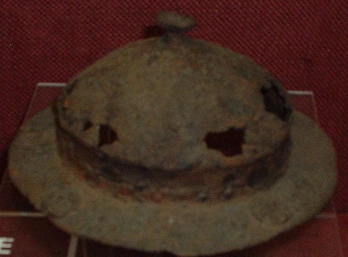 Keywords: Saxon shield boss.JPG Saxon shield boss from Ham Hill Photograph was taken in the Somerset County Museum in Taunton on 29-Oct-05 2005-10-31 own assumed Gaius Cornelius low quality Old Saxon Shield bosses Saxons Ham Hill Somerset County Museum |