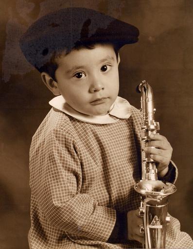 Keywords: saxophone child classical music sepia hat child peace nice tender baby musician mozart effect hat portrait