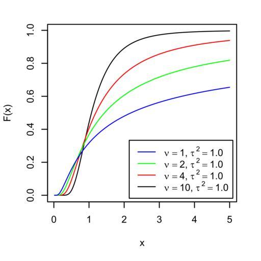 Keywords: Scaled inverse chi squared cdf.svg scaled inverse chi-squared probability distribution 2012-10-20 22 51 42 own Created in R using the code fragment below Jheald Source library pscl svg scaled_inverse_chi_squared cdf svg width 3 height 3 pointsize 8 x <- seq 0 02 5 by 0 02 par mar c 5 4 2 2 + 0 1 plot x pigamma x 5 5 ty 'l' ylab F x lines x pigamma x 2 2 ty 'l' col red lines x pigamma x 1 1 ty 'l' col green lines x pigamma x 0 5 0 5 ty 'l' col blue legend bottomright legend expression paste nu 1 tau 2 1 0 paste nu 2 tau 2 1 0 paste nu 4 tau 2 1 0 paste nu 10 tau 2 1 0 lty 1 col c blue green red black inset 0 02 dev off cc-zero Uploaded with UploadWizard Probability distributions Images with R source code |