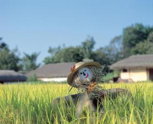 Keywords: scarecrow nobody agriculture guard green hat farm old one traditional security season protection funny countrified scare sunset country rice straw hat farmer harvest luxuriant shirt natural happiness field stand