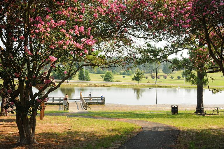 Keywords: scenic crape flowers trees lake fishing fish pond water park fort polk louisiana