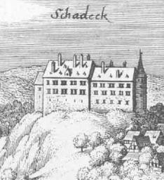 Keywords: Schadeck De Merian Hassiae.jpg de Dies ist ein Scan des historischen Dokuments Titel Schadeck - Auszug aus der Topographia Hassiae Sprache Deutsch en This is a scan of the historical document Title Schadeck - Topographia Hassiae language german de Scan eines Orginal Buchs durch http //www digitalis uni-koeln de/digitaletexte html en scan of the historical book by http //www digitalis uni-koeln de/digitaletexte html 1655 Matthäus Merian public domain PD-old-100 Burg Schadeck Merian Hassiae |