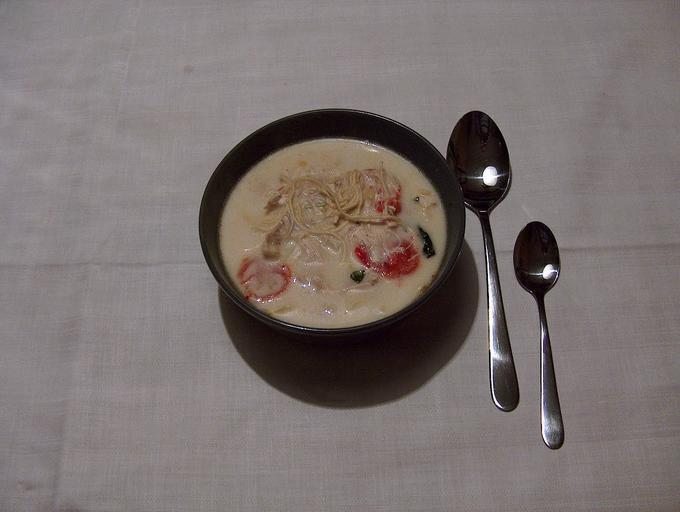 Keywords: Scharfe Kokos-Hühnersuppe.jpg Scharfe Kokos-Hühnersuppe coconut-chicken soup Own 2007-12-22 Thorsten Alge Ogmios Soups of Germany Coconut milk soups Photographs by User Ogmios Chicken soup