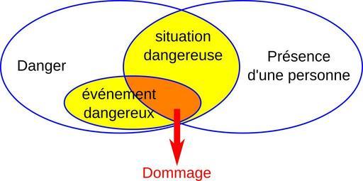 Keywords: Schema apparition dommage.svg en A damage may occurs when a person is in a dangerous situation i e is in presence of at least one danger and a dangerous event happens trigger fr Un dommage peut survenir lorsqu'une personne est en situation dangereuse c -à-d exposée à au moins un danger et que survient un événement dangereux déclencheur own Cdang 2010-11-03 inkscape Safety |