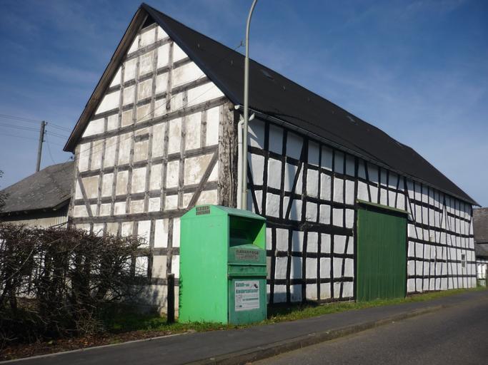 Keywords: Scheune gieleroth2009.jpg en Reinhardshof Gieleroth old timber framed barn Gieleroth alte Scheune own Freimut Bahlo 2009-11-18 Timber framing in Landkreis Altenkirchen Westerwald Cultural heritage monuments in Gieleroth Timber framed barns in Germany |