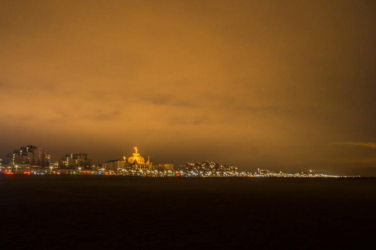 Keywords: scheveningen night yellow ocean north sea beach shoreline netherlands travel dutch coast scenery