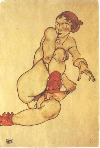 Keywords: Schiele - Akt mit hochgezogenem rechtem Bein - 1913.jpg en Female nude with pulled up rigth leg de Akt mit hochgezogenem rechtem Bein repro from art book 1913 Creator Egon Schiele Author died more than 70 years ago - public domain PD-old-auto 1918 Paintings by Egon Schiele |