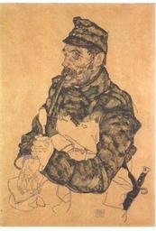 Keywords: Schiele - Österreichischer Soldat mit Pfeife - 1915.jpg title Austrian sodier with a pipe Österreichischer Soldat mit Pfeife repro from art book 1915 Creator Egon Schiele Author died more than 70 years ago - public domain PD-old-auto 1918 Paintings by Egon Schiele |