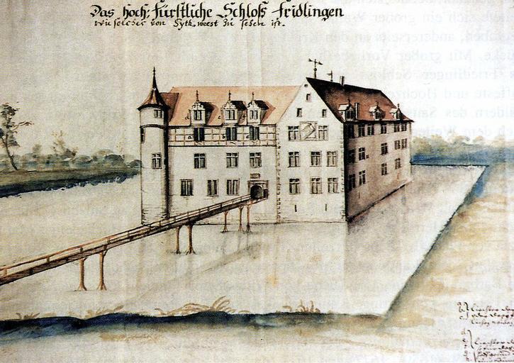 Keywords: Schloss Friedlingen.JPG en moated manor house Friedlingen de Schloss Friedlingen Generallandesarchiv Karlsruhe Hfk XXII/20; abgedruckt in Das Markgräflerland 2/2000; S 164 Author ca 1680 Schloss Friedlingen PD-old