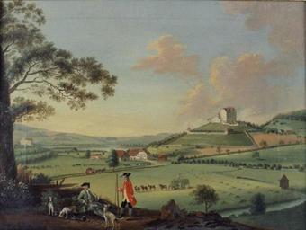Keywords: Schloss Wildegg um 1760.jpg Fernblick auf Schloss Wildegg AG von Süden in sommerlicher Landschaft ca 1760 oil on canvas cm 34 45 Historisches Museum Aargau Schloss Wildegg accession number object history credit line own PD-old-100 1760s paintings in Switzerland Castles in art Collection of Schloss Wildegg |