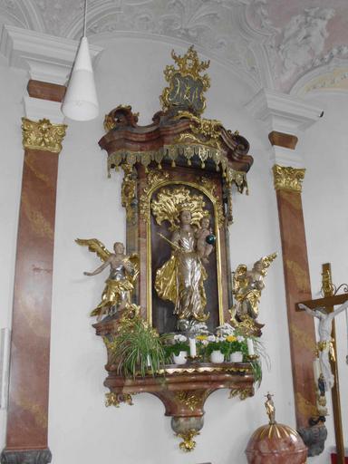 Keywords: Schlosskapelle, Baldachinmadonna.JPG de Absberg Landkreis Weißenburg-Gunzenhausen Bayern Ehemaliges Deutschordensschloss Schlosskapelle heute Kath Pfarrkirche St Ottilia own Rensi Saint Odile Church Absberg Cc-zero