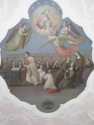 Keywords: Schlosskapelle, Tod der hl. Ottilia.JPG de Absberg Landkreis Weißenburg-Gunzenhausen Bayern Ehemaliges Deutschordensschloss Schlosskapelle heute Kath Pfarrkirche St Ottilia Deckengemälde Sterben der hl Ottilia own Rensi 2012-04 Saint Odile Church Absberg Cc-zero |