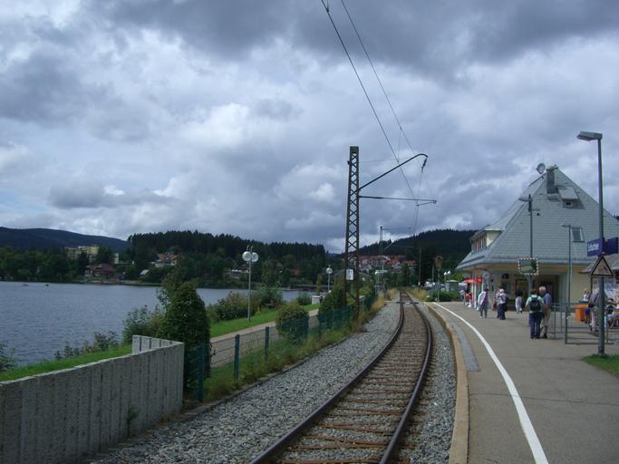 Keywords: schluchsee platform railway station seemed railroad track clouds