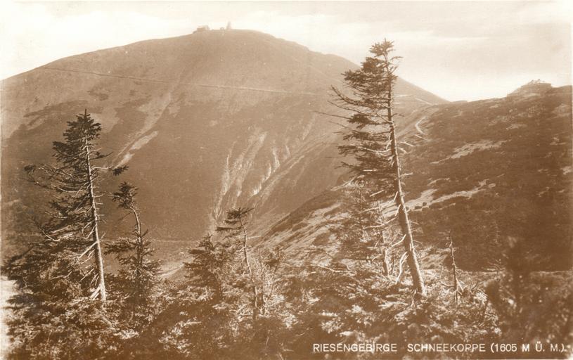 Keywords: Schneekoppe im Riesengebirge (1605m).jpg de Riesengebirge mit Schneekoppe 1605m Angang 20 Jhdt own Abubiju other versions PD-old Uploaded with UploadWizard Sněžka