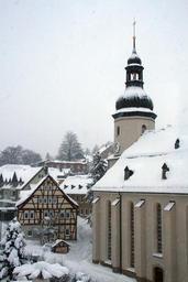 Keywords: Schönheide im Erzgebirge – Kulturdenkmale – Bauernhaus.jpg de Das Fachwerkhaus Hauptstraße 49 neben der Martin-Luther-Kirche - fotografiert von der obersten Etage des Rathauses aus - hat eine lange Geschichte die im Bürsten- und Heimat-Museum das heute dieses Gebäude nutzt dokumentiert ist Das Fachwerkhaus aus dem Jahr 1657 wurde als Schule errichtet und 1680 als Pfarrhaus umgebaut Nach dem Umzug des Pfarramts in die Obere Straße wurde es als Wohnhaus genutzt Jahrzehnte war sein Fachwerk hinter Verbretterung “ wie jetzt noch auf der Wetterseite - und Putz verschwunden Mit der Umnutzung als Museum wurde sein schönes Fachwerk wieder sichtbar gemacht Schönheides Ortsbild wird vor der Verstädterung in der zweiten Hälfte des 19 Jahrhunderts von Bauten dieses Typs geprägt gewesen sein Auch im Inneren gibt es noch alte Bauteile - Bauernhaus Fachwerkgebäude im Ortskern ehemals Pfarrhof Teil der alten Ortsstruktur von ortsbildprägender Bedeutung Datierung bezeichnet 1757 aus Kulturdenkmale im Freistaat Sachsen Landesamt für Denkmalpflege own Klaaschwotzer 2012-12-11 Cc-zero Cultural heritage monuments in Schönheide Martin Luther Church in Schönheide |