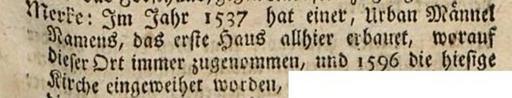 Keywords: Schönheide im Erzgebirge Dietmann 1754 Siedlungsbeginn 1.jpg Schönheide im Erzgebirge Der Beginn der Besiedlung wird allgemein auf das Jahr 1537 datiert Als Beleg wird in allen Veröffentlichungen diese Publikation zitiert Karl Gottlob Dietmann Die gesamte ¦ Priesterschaft in dem Churfürstenthum Sachsen ¦ Band I 3 Konsistorium Wittenberg Dresden und Leipzig 1755 Teil I Band 3 http //dfg-viewer de/show/ set 5Bimage 5D 629 set 5Bzoom 5D default set 5Bdebug 5D 0 set 5Bdouble 5D 0 set 5Bmets 5D http 253A 2F 2Fdigitale bibliothek uni-halle de 252Foai 252F 253Fverb 253DGetRecord 2526metadataPrefix 253Dmets 2526identifier 253D3118505 Digitalisat der Universitätsbibliothek Halle Ausschnitt aus der Seite 609 Bei dem Siedlungsbeginn von Schönheide spielte der Schwarzwinkel eine große Rolle Nach der Darstellung Ernst Flaths in Ernst Flath Die Gründungsgeschichte Schönheides “ Zur bevorstehenden Vierhundertjahrfeier des Ortes In Glückauf “ Zeitschrift des Erzgebirgsvereins Nr 5/1937 Mai 1937 Seite 66 haben die Gebietsherrn Balthasar Friedrich Edler von der Planitz und sein Bruder Georg Edler von der Planitz nach ihrer Entscheidung das Gebiet des heutigen Schönheide besiedeln zu lassen als Markwart Urban Mendel auch Männel genannt für vorbereitende Arbeiten wie Abmessen und Abmarken sowie das Festlegen der Dorfflurgrenze entsandt Dieser habe sein Haus im Schwarzwinkel errichtet und sein Lehen habe beiderseits des Filzbachs im Bereich von dessen Süd-Ost-Fließrichtung gelegen Ernst Flath schreibt weiter Der Ortsteil Schwarzwinkel wurde noch um die Wende zu 1800 als Marquartswinkel bezeichnet Grundstücke dieses Bereichs im ersten Drittel des 20 Jahrhunderts noch als Markersfelder und Markerswiesen Urban Mendel erscheint als einer von zwölf Siedlern im Türkensteuerregister der Herrschaft Auerbach aus dem Jahr 1542 In der Abschrift von Ewald Rannacher Ewald Rannacher Das Türkensteuerregister der Jahre 1531 und 1542 unter besonderer Berücksichtigung der Herrschaft Auerbach in Der Vogtländische Erzähler Beilage zu Auerbacher Zeitung/Rodewischer Tageblatt Nr 34/1936 heißt es Urban Mendel schätzt sein Gut auf 17 fl Taler Höhe der Steuer 2 kue Kühe 1 kalbe Kalb 15 fl Mendel besaß also zwei Kühe und ein Kalb Da bei anderen der zwölf Bauern noch erwähnt wird dass sie Mägde hatten bei Mendel aber nicht ist zu schließen dass er zum Zeitpunkt der Steuererhebung ohne Magd die Bauernwirtschaft betrieb Scan aus Buch von 1755 Klaaschwotzer 1755 Schwarzwinkel Schönheide Historical documents of Schönheide Cc-zero |