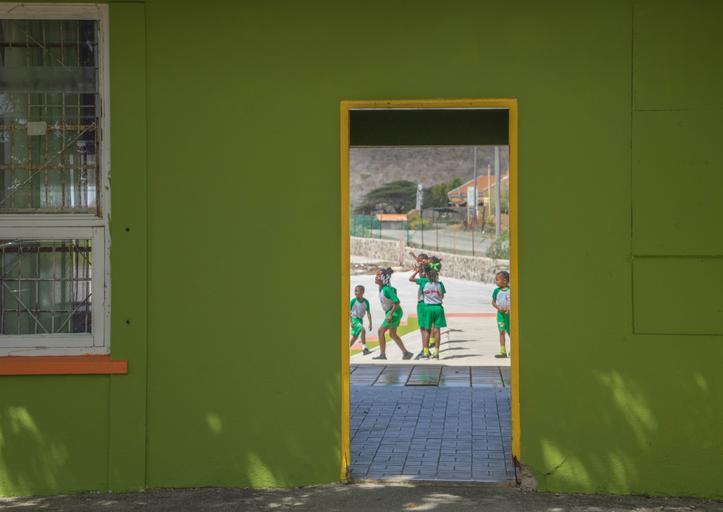 Keywords: school curacao doorway student caribbean tropical education learning bright children people uniforms