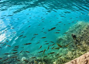 Keywords: school of fish fish water clear water wildlife marine underwater
