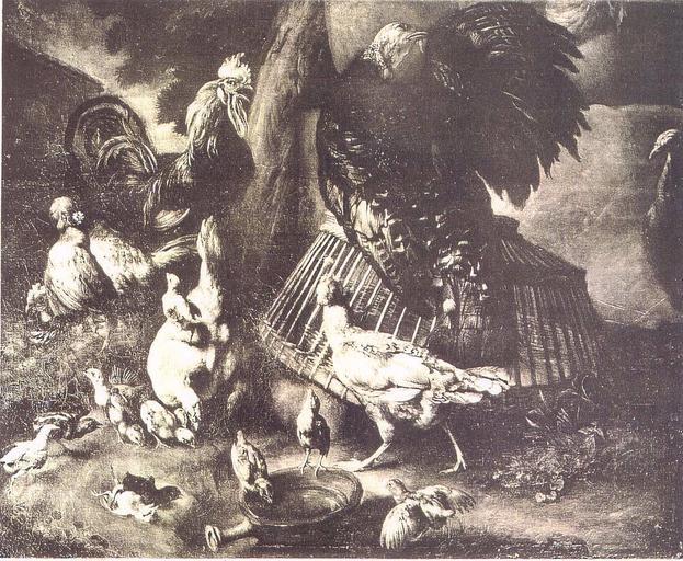 Keywords: Schultz Poultry.JPG A Yard with Poultry Podwórko z drobiem Creator Daniel Schultz the Younger s 1660 oil canvas cm 130 160 Catalogue of paintings removed from Poland by the German occupation authorities during the years 1939-1945 Polish paintings / comp Władysław Tomkiewicz ; Ministry of Culture and Art Warsaw 1950 Editor Ministry of Culture and Art See also http //kolekcje mkidn gov pl/katalog/podglad ID 11030 Department of National Heritage Wartime losses an official webpage of Polish Ministry of Culture Art and National Heritage PD-Art PD-old-100 Daniel Schultz the Younger 17th-century Polish paintings lost in Poland during World War II Poultry in art |