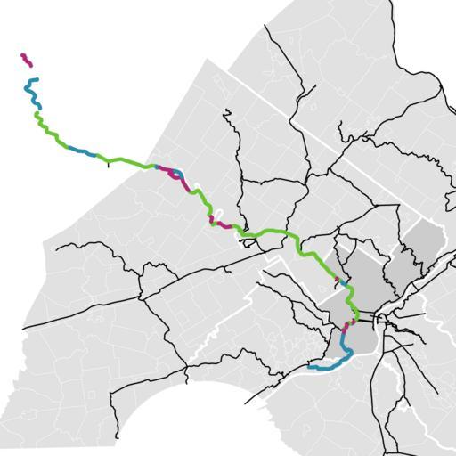Keywords: SchuylkillRiverTrailMap.svg en Map of the Schuylkill River Trail shown within the Delaware Valley Regional Planning Commission region Green signifies existing segments Magenta signifies segments in progress Teal signifies planned segments 2015-03-26 Data Municipalities counties and trails shapefiles as of 10/2014 from DVRPC http //www dvrpc org/Mapping/data htm Mapping ArcGIS exported to SVG Grenavitar other versions cc-zero Uploaded with UploadWizard Schuylkill River Trail |