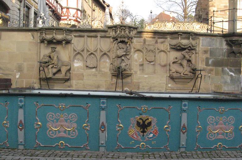 Keywords: Schwäbisch Hall, Gotischer Marktplatzbrunnen.jpg Blick nach ENE auf den Gotischen Brunnen am Nordrand des Marktplatzes in der Schwäbisch Haller Altstadt Rechts oben ist ein Teil des angebauten Prangers sichtbar 2011-03-25 own Brtlwr2 <span class signature-talk >talk</span> 49 6 45 8 N 9 44 13 31 E region DE_heading ENE Cc-zero Fischbrunnen Schwäbisch Hall |