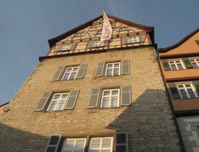 Keywords: Schwäbisch Hall, Keckenburg, Blick aufwärts.jpg Blick vom Keckenhof der Schwäbisch Haller Altstadt nach NE die hoch aufragende Keckenburg hinauf Auf einer Informationstafel am Gebäude steht <br /> Untere Herrengasse 10<br /> <strong>Ein Turmhaus wie in der Toskana</strong><br /> Im Mittelalter war die žKeckenburg Wohnhaus Adelssitz und Befestigung zugleich Um 1240 enstanden erhielt sie 1515 ihren Fachwerkaufsatz Noch heute tragen im Innern die ersten Hölzer aus dem 13 Jahrhundert die Geschossdecken Die žKeckenburg nach der früher hier wohnenden Familie žKeck benannt beherbergt jetzt Teile des Hällisch-Fränkischen Museums 2011-03-25 own Brtlwr2 <span class signature-talk >talk</span> 49 6 40 02 N 9 44 13 17 E region DE_heading NE Cc-zero Buildings in Schwäbisch Hall Keckenburg Blick nach oben |