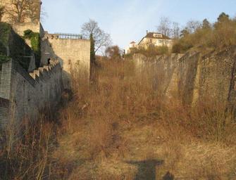 Keywords: Schwäbisch Hall, Schiedgraben vom Steg an der Stelle des Limpurger Tors.jpg Schiedgraben der Stadtbefestigung im Süden der Schwäbisch Haller Altstadt Von links in den Graben ragt der Mantelturm links etwas über diesem liegt um den noch kahlen Baum das Kastengärtle darüber wiederum der Giebel des Neubaus 2011-03-25 own Brtlwr2 <span class signature-talk >talk</span> 49 6 38 27 N 9 44 16 28 E region DE_heading NE Cc-zero Buildings in Schwäbisch Hall Schiedgraben |