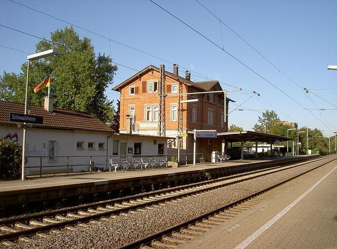 Keywords: 48 52N 9 21E Schwaikheim station is located in Schwaikheim at the 6.8 kilometre point of the Waiblingen–Schwäbisch Hall railway in the German state of Baden-Württemberg. Opened 26 October 1876. attribution: Baron2105