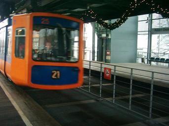 Keywords: Schweb02012006-023.JPG 2005-12-30 own assumed Stefan17675~commonswiki Schwebebahn station Robert-Daum-Platz 2005 photographs of Wuppertal Wuppertal Schwebebahn trains 1972er Blue and orange Coupling systems of Wuppertal Schwebebahn WSW GTW 72 Christmas decorations in Wuppertal low quality |