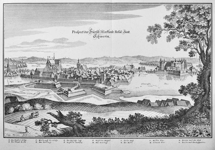Keywords: Schwerin (Merian).jpg Artwork creator Matthäus Merian b 1653 copper engraving object history exhibition history credit line de accession number Topographia Saxoniae Inferioris Frankfurt am Main 1653 PD-100 Engravings of Topographia Saxoniae Inferioris Schwerin in the 17th century Historic Views of Schwerin Castle |