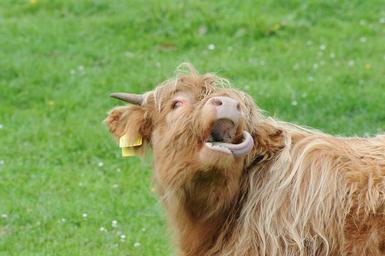 Keywords: scotland highland beef pasture scotland beef shaggy hair cow portrait cute expression close face tongue margit wallner