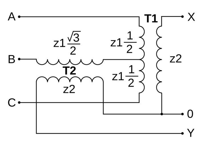 Keywords: Scott transformer.svg en Scott transformer Scott circuit pl Transformator Scotta transformator w układzie Scotta Own Zureks 2009 Scott-T transformer
