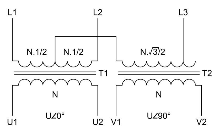 Keywords: ScottTransformer.svg Scott-T transformer Own 2008-05-13 PieterJanR PieterJanR Scott-T transformer