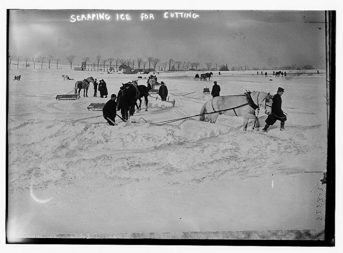 | Keywords: Scraping ice for cutting (LOC) (2722925114).jpg Bain News Service publisher Scraping ice for cutting between 1910 and 1915 1 negative glass ; 5 x 7 in or smaller Notes Title from unverified data provided by the Bain News Service on the negatives or caption cards Forms part of George Grantham Bain Collection Library of Congress Format Glass negatives Rights Info No known restrictions on publication Repository Library of Congress Prints and Photographs Division Washington D C 20540 USA http //hdl loc gov/loc pnp/pp print hdl loc gov/loc pnp/pp print General information about the Bain Collection is available at http //hdl loc gov/loc pnp/pp ggbain hdl loc gov/loc pnp/pp ggbain Persistent URL http //hdl loc gov/loc pnp/ggbain 11584 hdl loc gov/loc pnp/ggbain 11584 Call Number LC-B2- 2523-3 http //www flickr com/photos/library_of_congress/2722925114/ Scraping ice for cutting LOC LOC-image ggbain 11584 Uploaded by LongLiveRock http //www flickr com/photos/8623220 N02 The Library of Congress PD-Bain File Upload Bot Magnus Manske August 15 2010 Ice cutting People on ice Animals on ice Horses in snow United States in the 1900s |