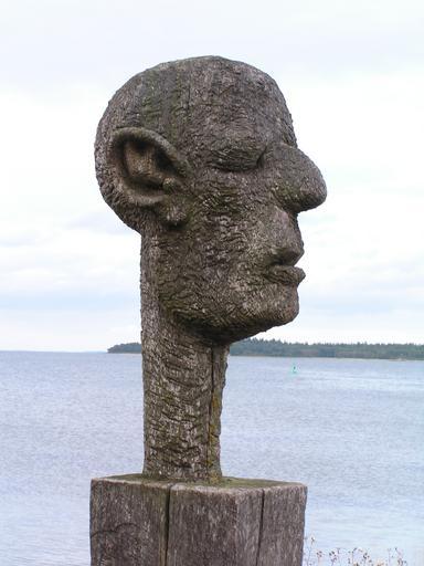 Keywords: sculpture art wood weathered man head wieck darß baltic sea