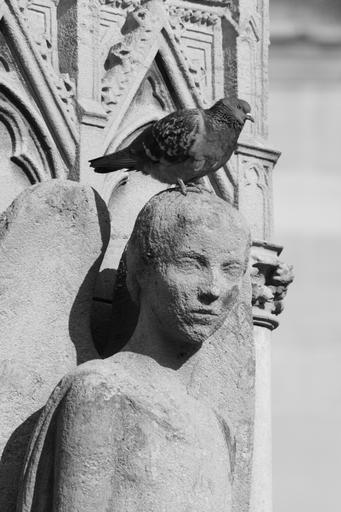 Keywords: sculpture black and white pigeon statue paris angel square jean xxiii