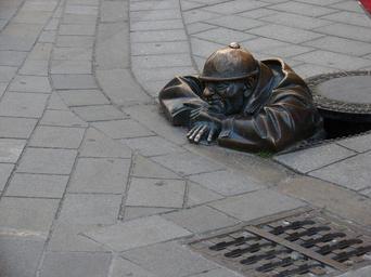 Keywords: sculpture bronze sculpture ausschau funny man human czech republic bratislava rest break