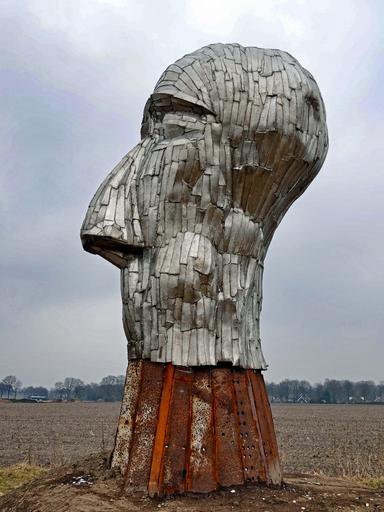 Keywords: sculpture netherlands art artistic sky clouds field trees unique head face