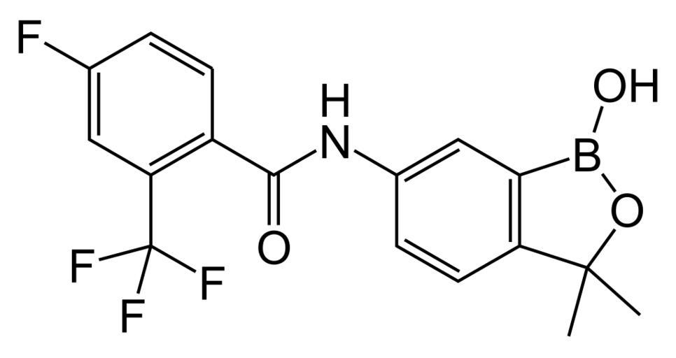 | Keywords: SCYX-7158.svg Skeletal formula of SCYX-7158 4-fluoro-N- 1-hydroxy-3 3-dimethyl-1 3- ‹dihydro-benzoc1 2oxaborol-6-yl-2-trifluoromethyl benzamide Created using http //www acdlabs com/download/chemsk html ACD/ChemSketch 12 0 and Inkscape Optimized with vim Own work after Jacobs RT Nare B Wring SA Orr MD Chen D et al 2011 SCYX-7158 an orally-active benzoxaborole for the treatment of stage 2 human african trypanosomiasis PLoS Negl Trop Dis 5 6 e1151 10 1371/journal pntd 0001151 2011-06-29 Fvasconcellos Antiprotozoal agents Oxaboroles Trifluoromethyl compounds Benzanilides Un-N-substituted anilides |