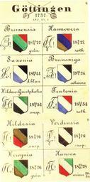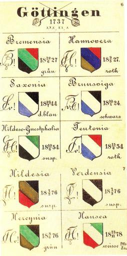| Keywords: SCzuGÖ1881.jpg de Farbentafel der Kösener Corps im Göttinger Senioren-Convent 1881 ursprünglich 1881 erschienen als Teil des Vademecum für den deutschen Corpsstudenten Jena bei Carl Hahn Sohn 1881 Das Jahr 1737 ist das Jahr der Inauguration der Göttinger Universität Scan aus Einst und Jetzt Band 44 1999 S 115 Author 1881 PD-Art Göttingen in the 1880s 1881 Zirkel Kösener Corps Göttinger Senioren-Convent | ||||